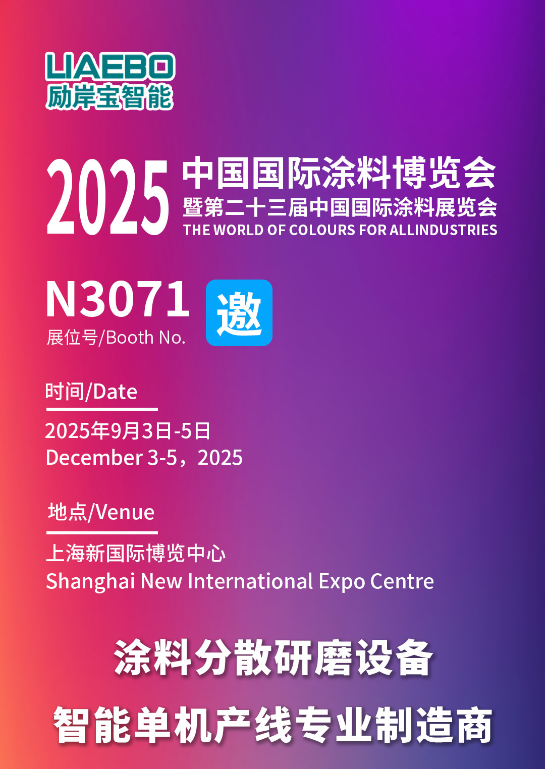 勵(lì)岸寶智能誠(chéng)邀您蒞臨參觀2025中國(guó)國(guó)際涂料博覽會(huì)