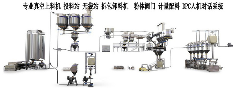 本公司提供的粉體配料系統(tǒng)是運(yùn)用粉體輸送儲(chǔ)、存設(shè)備和各種計(jì)量傳感器,對(duì)一種或多種粉體物料按量輸送、配比混合及輸送投料的設(shè)備系統(tǒng)。是在精細(xì)化工、化學(xué)、油漆、油脂、藥品、飼料、日用化工、食品、制藥等行業(yè)生產(chǎn)過(guò)程中常用集成設(shè)備,通常是由DCS控制相關(guān)設(shè)備模塊,如:拆包站、輸送管路、儲(chǔ)存艙、計(jì)量倉(cāng)等組成的自動(dòng)化配料設(shè)備系統(tǒng)。例如:反應(yīng)釜的粉體投料控制、滑石粉、樹(shù)脂、飼料等粉體成品包裝配比。