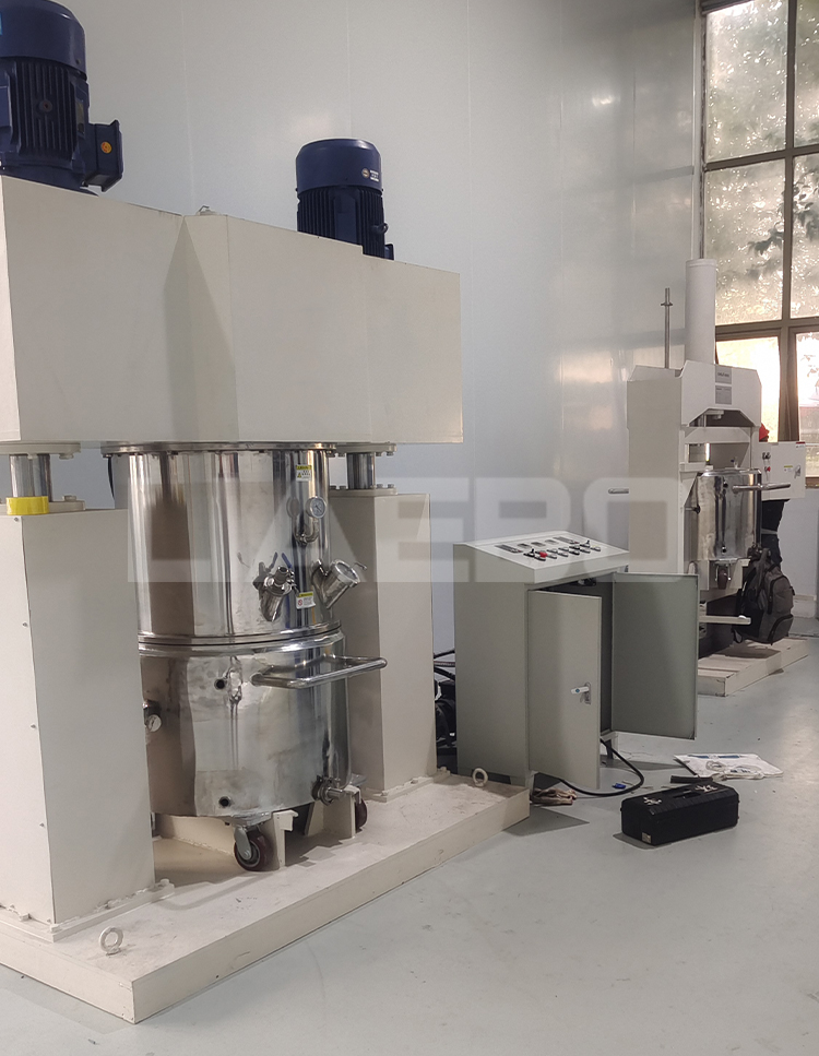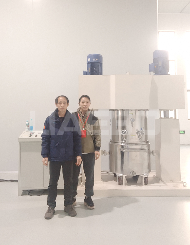湖南某科技股份有限公司200L龍門式雙行星攪拌機(jī)調(diào)試成功