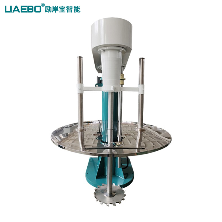 帶升降蓋液壓分散機主要是針對不同粘度漿狀的液體原料進行粉碎、分散、乳化、混合,通過分散盤上下鋸齒的高速運轉的新型高效攪拌設備,對物料進行高速的強烈的剪切、撞擊、粉碎、分散,達到迅速混合、溶解、分散、細化的功能。帶升降蓋液壓分散機通過高速運轉,使物料呈環(huán)狀流,產生強旋渦,呈螺旋狀下降到渦流底部。粒子間產生強烈的剪切撞擊與磨擦,達到迅速分散、溶解功能。 可選配PTFE刮壁器貼合桶壁旋轉,對桶壁進行刮拭,解決了物料掛壁的問題,同時加快了物料的循環(huán) ,通過液壓泵工作驅動液壓柱塞升降,帶動整個傳動機構和工作組升降,氣動升降蓋子的設計適合不同高度的料筒使用同一臺機器完成,并帶有氣動掀蓋功能方便喂料,減少工人勞動強度。