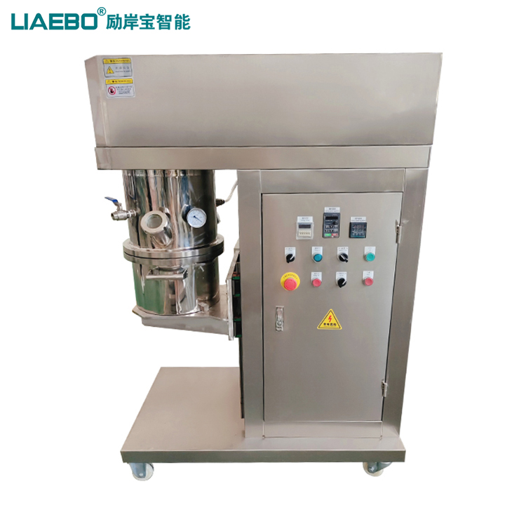 雙行星真空攪拌機是一種高性能、高效率、易清洗維護的新型攪拌設備。主要由減速電機、行星架、攪拌器、分散器、刮壁器、料桶、升降系統(tǒng)、液壓擠出系統(tǒng)以及機架等構(gòu)成,設備的雙組攪拌器運行時自轉(zhuǎn)同時繞著軸心進行公轉(zhuǎn),攪拌器形式根據(jù)物料粘度和工藝特性選配,常見的包括漿葉式、麻花式、爪式、框式等,具備良好的混合、反應、捏合、溶解的作用;高速分散器由多層具備極高線速度的鋸齒狀分散盤組成,它同樣在高速自轉(zhuǎn)的同時繞著軸心進行公轉(zhuǎn),能夠?qū)⒎哿?助劑)快速的分散到漿料里,具備很強的分散作用。設備配有一組獨立刮刀,對桶壁進行不斷的刮拭,同時攪拌漿葉可以增加刮片,對料桶底部進行刮拭,避免攪拌死角,確保產(chǎn)品的穩(wěn)定性;雙行星真空攪拌機傳動采用行星齒輪傳動,有較大的輸出扭矩,適用干高溫、高固,高粘度等高難度工況;該設備采用密閉式設計,可以配合真空系統(tǒng),實現(xiàn)真空攪拌,攪拌桶也可設計帶夾套加熱,配合模溫機,實現(xiàn)恒溫攪拌功能,是市場上針對高粘度物料的分散、攪拌設備。