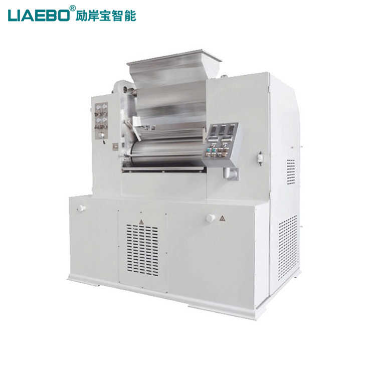 平液壓三輥研磨機(jī)的輥筒采用獨(dú)特的合金材料澆鑄,具有極高的硬度。該系列采用比例閥調(diào)節(jié)輥筒間的壓力與間距,提高了整機(jī)的穩(wěn)定性,增加了設(shè)備的使用壽命。該設(shè)備可以采用西門子PLC自動控制輥筒壓力、轉(zhuǎn)速與溫度(選項(xiàng))。工作時(shí)間快、慢輥調(diào)節(jié)到適當(dāng)位置,啟動機(jī)器,然后將需要研磨的漿料加入中輥與慢輥之間銅刀處,漿料經(jīng)過中、慢輥表面擠軋后,由中輥帶給快輥,再由緊貼表面的出料刮刀予以刮下,通過裝有欄板的刀板,流入盛料筒,由此構(gòu)成整個(gè)研磨的過程。